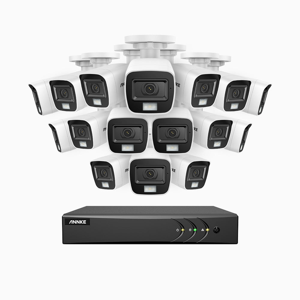 ADLK500 - Kit de 16 cámaras de vigilancia 3K con grabador de 16 canales, Doble Luz Visión Nocturna, Apertura Superficial f/1.2, Señal de Salida 4 en 1, Micrófono Incorporado, IP67 Resistente al Clima