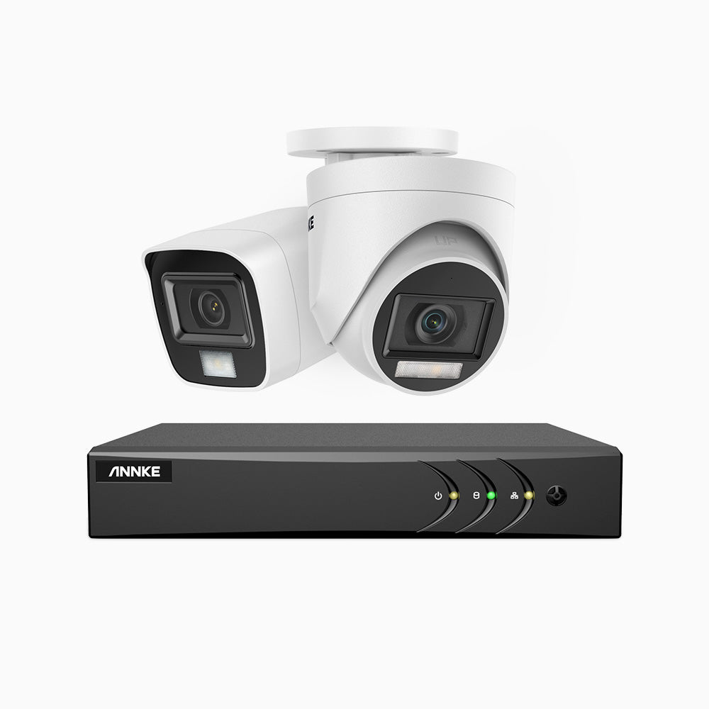 ADLK500 - Kit de vigilancia 3K con 1 cámaras bullet y 1 cámaras domo y grabador de 8 canales, Doble Luz Visión Nocturna, Apertura Superficial f/1.2, Señal de Salida 4 en 1, Micrófono Incorporado, IP67 Resistente al Clima