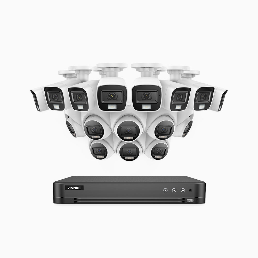 En el modo de luz dual inteligente predeterminado, la cámara puede encontrar claramente el objetivo por la noche con luz infrarroja. Si hay un objetivo en movimiento, la luz blanca se encenderá y la infrarroja se apagará, para obtener una imagen en color clara. Además, también puedes elegir el modo de luz infrarroja completa o luz blanca completa. La iluminación infrarroja alcanza hasta 25 m, y la distancia de la luz blanca es de hasta 20 m para una imagen nocturna brillante.