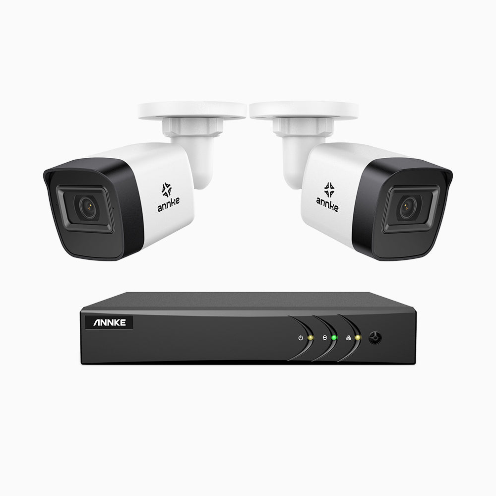 EL200 - Kit de 2 cámaras de vigilancia 1080p con grabador de 8 canales, DVR inteligente con detección de humanos y vehículos, visión nocturna por infrarrojos de 20 metros, señal de salida 4-en-1, IP67