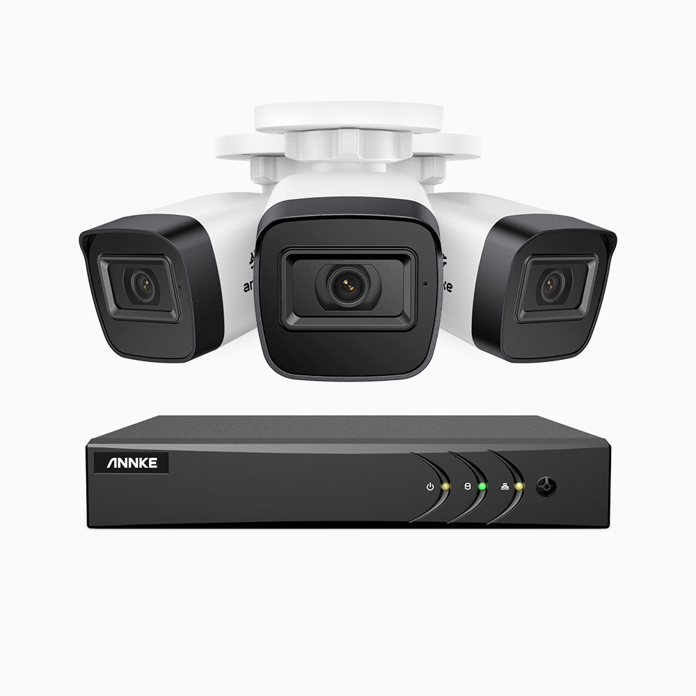 EL200 - Kit de 3 cámaras de vigilancia 1080p con grabador de 8 canales, DVR inteligente con detección de humanos y vehículos, visión nocturna por infrarrojos de 20 metros, señal de salida 4-en-1, IP67