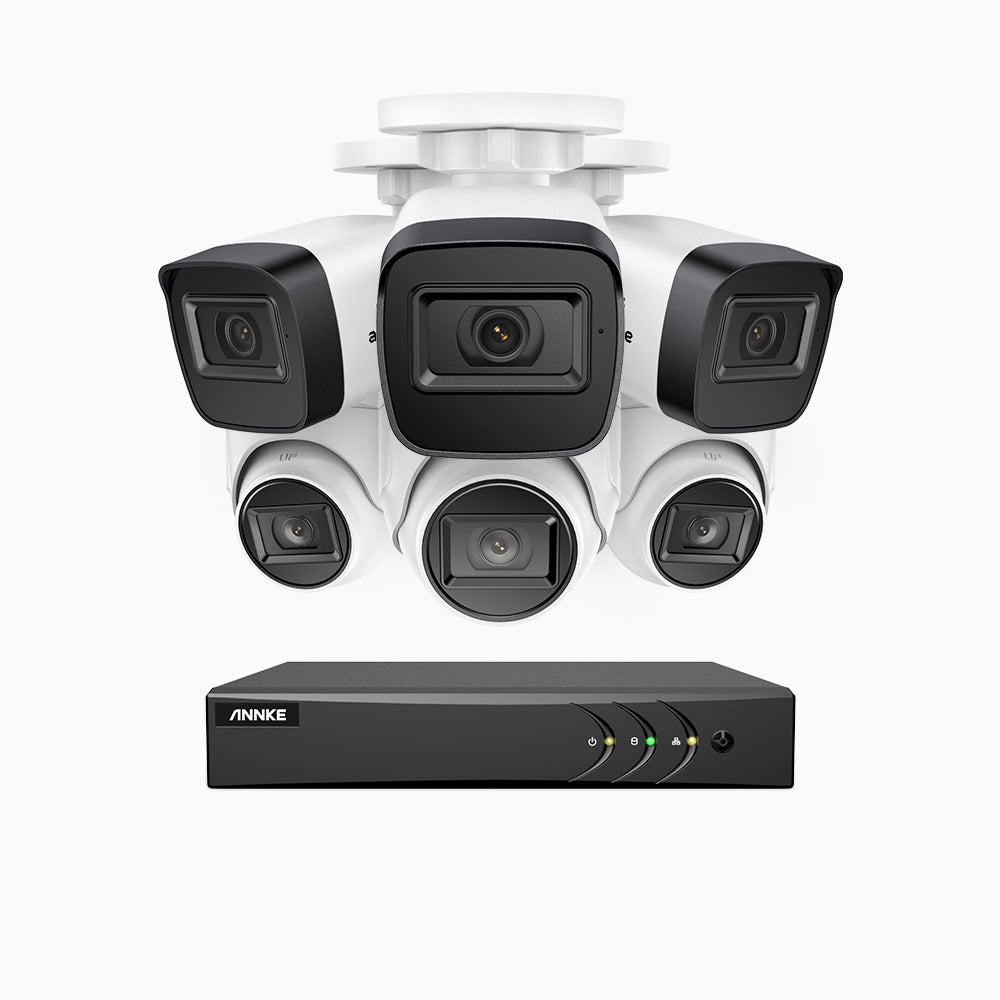 EL200 - Kit de 3 cámara bullet y 3 cámara domo y de vigilancia 1080p con grabador de 8 canales, DVR inteligente con detección de humanos y vehículos, visión nocturna por infrarrojos de 20 metros, señal de salida 4-en-1, IP67
