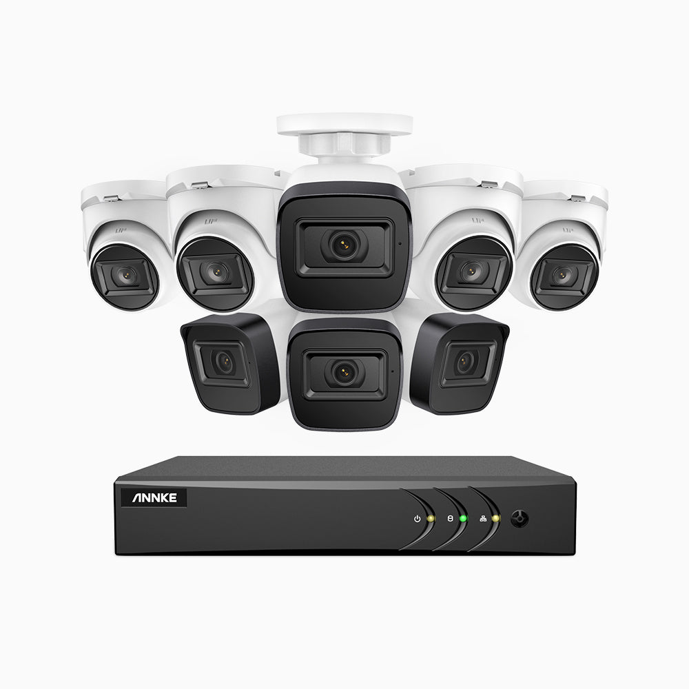EL200 - Kit de 4 cámara bullet y 4 cámara domo y de vigilancia 1080p con grabador de 8 canales, DVR inteligente con detección de humanos y vehículos, visión nocturna por infrarrojos de 20 metros, señal de salida 4-en-1, IP67