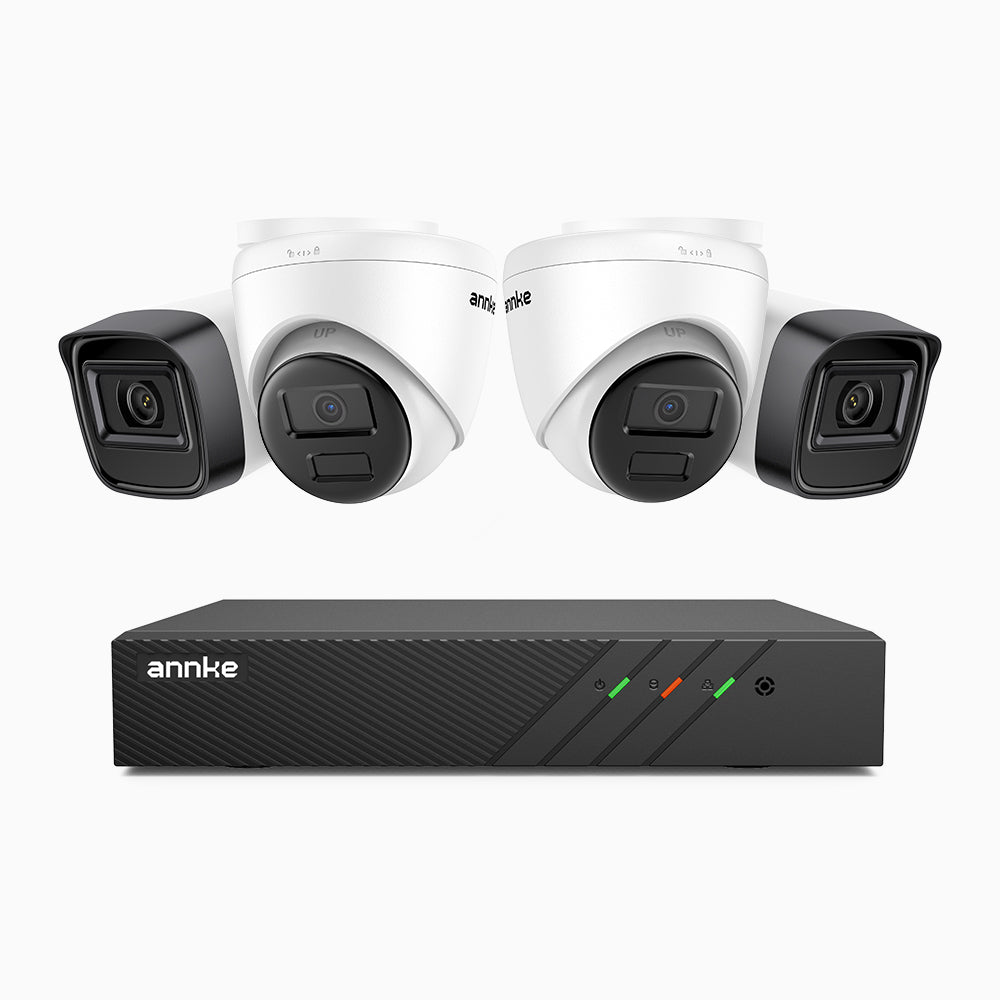 H300 - Kit de vigilancia PoE de 3MP con 2 cámaras bullet y 2 cámaras domo y videograbador NVR de 8 canales,visión nocturna EXIR 2.0, detección de movimiento, H.265+, impermeabilidad IP67