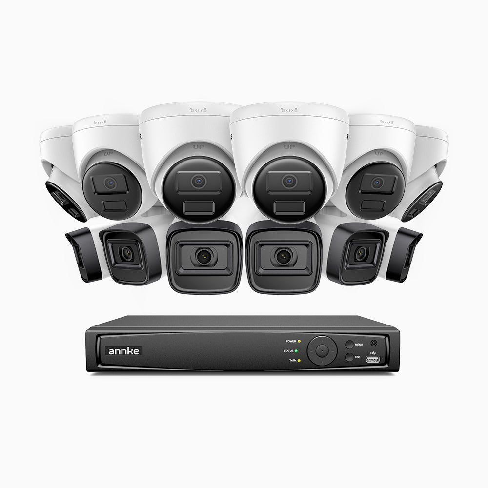 H300 - Kit de vigilancia PoE de 3MP con 6 cámaras bullet y 6 cámaras domo y videograbador NVR de 16 canales,visión nocturna EXIR 2.0, detección de movimiento, H.265+, impermeabilidad IP67