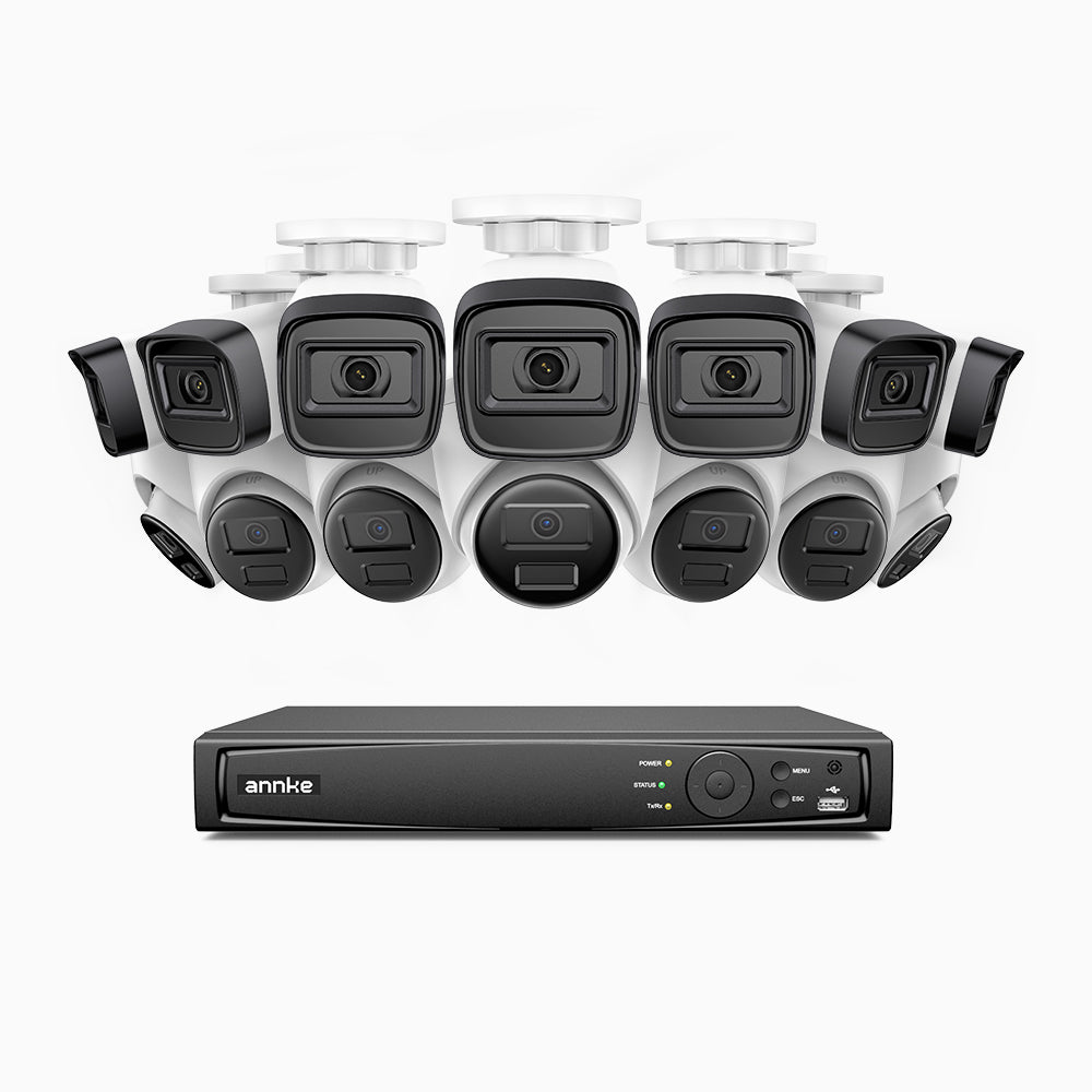 H300 - Kit de vigilancia PoE de 3MP con 7 cámaras bullet y 7 cámaras domo y videograbador NVR de 16 canales,visión nocturna EXIR 2.0, detección de movimiento, H.265+, impermeabilidad IP67