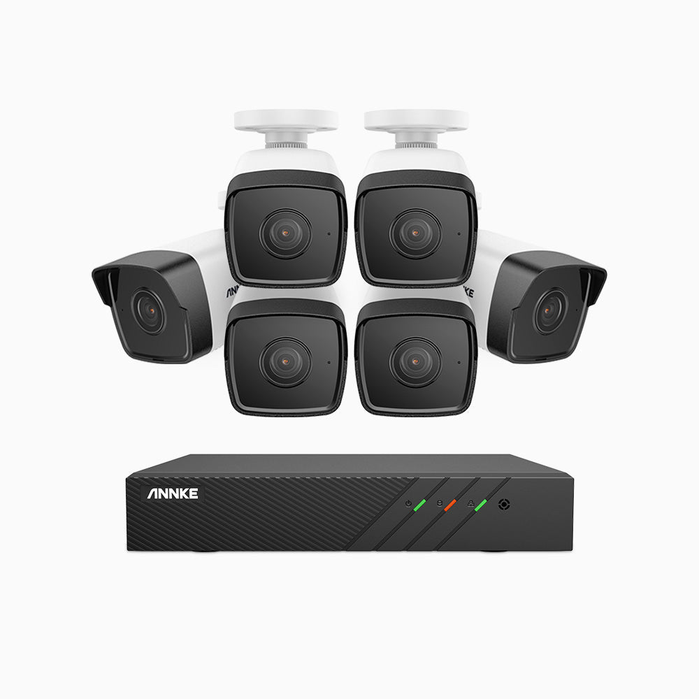 H500 - Kit de 6 cámaras de vigilancia PoE de 3K con videograbador NVR de 8 canales, EXIR Visión Nocturna, micrófono integrado, compatibile con Alexa