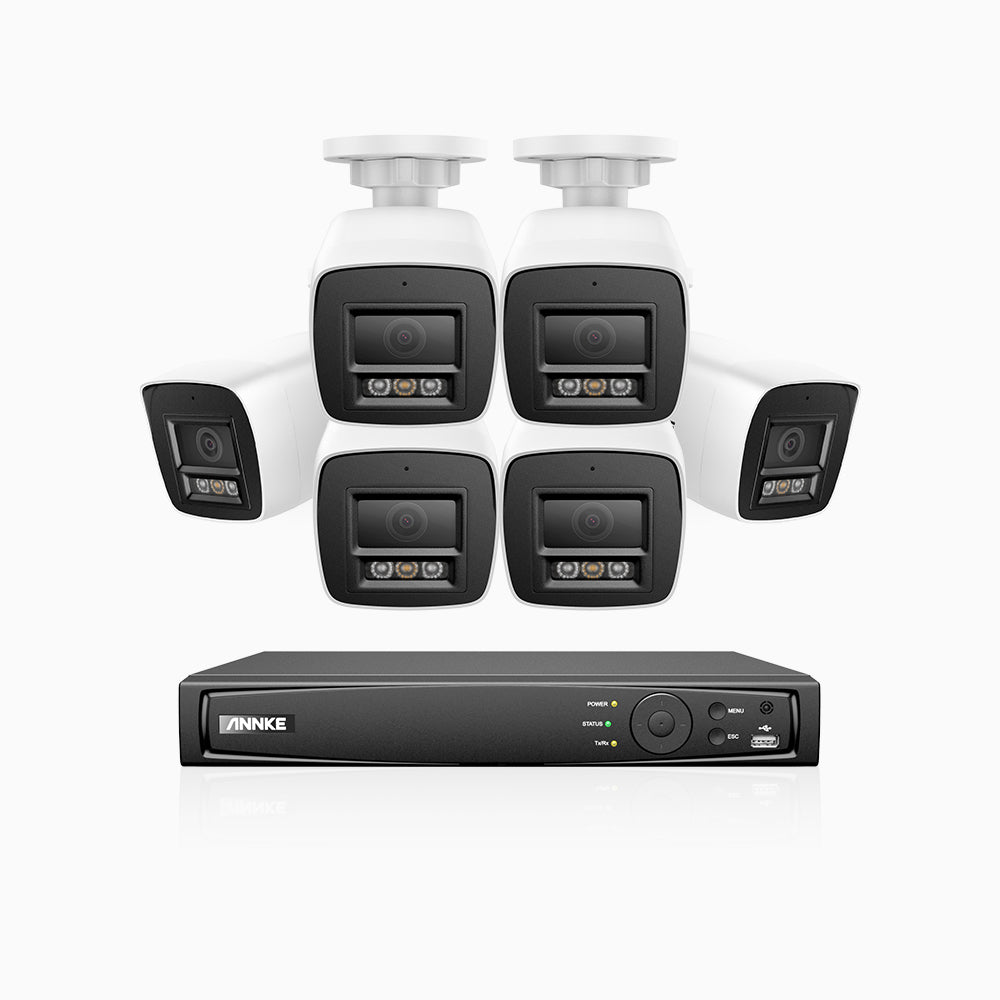 H800 - Kit de 6 cámaras de vigilancia PoE de 4K con videograbador NVR de 8 canales, Visión nocturna a color e infrarrojos, detección de humanos y vehículos, micrófono integrado, ángulo de visión 96º