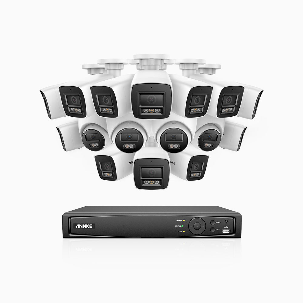 H800 - Kit de vigilancia PoE 4K con 12 cámaras bullet y 4 cámaras domo y videograbador NVR de 16 canales, Visión nocturna a color e infrarrojos, detección de humanos y vehículos, micrófono integrado, ángulo de visión 96º
