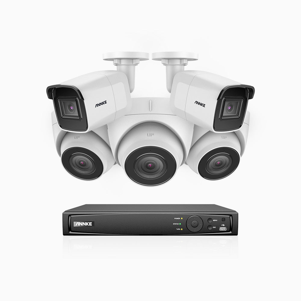 H800 - Kit de vigilancia PoE 4K con 2 cámaras bullet y 3 cámaras domo y videograbador NVR de 8 canales, Visión nocturna a color e infrarrojos, detección de humanos y vehículos, micrófono integrado, ángulo de visión 96º