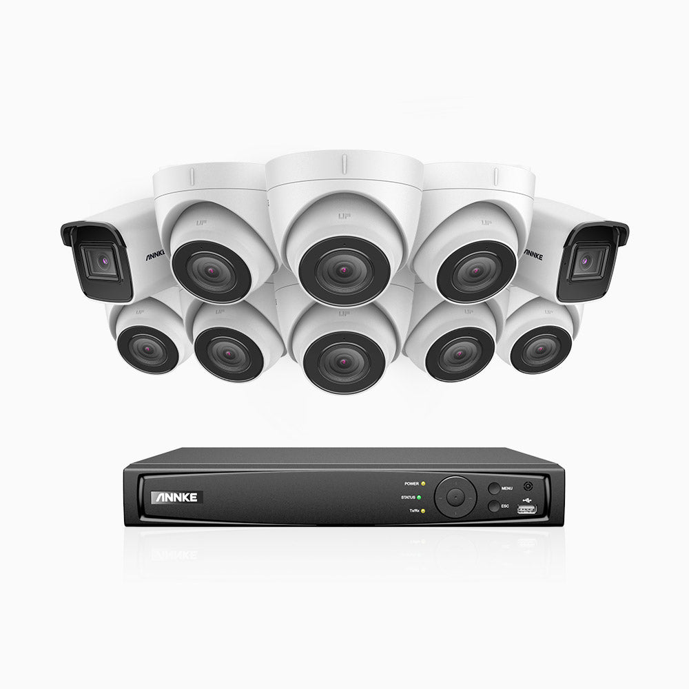 H800 - Kit de vigilancia PoE 4K con 2 cámaras bullet y 8 cámaras domo y videograbador NVR de 16 canales, Visión nocturna a color e infrarrojos, detección de humanos y vehículos, micrófono integrado, ángulo de visión 96º