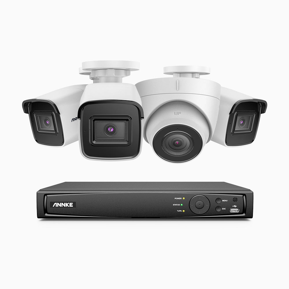 H800 - Kit de vigilancia PoE 4K con 3 cámaras bullet y 1 cámaras domo y videograbador NVR de 8 canales, Visión nocturna a color e infrarrojos, detección de humanos y vehículos, micrófono integrado, ángulo de visión 96º