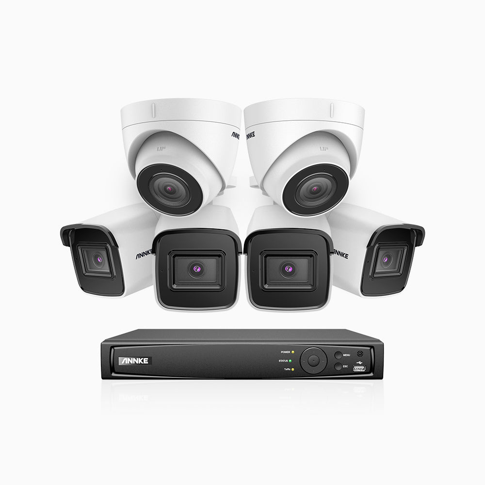 H800 - Kit de vigilancia PoE 4K con 4 cámaras bullet y 2 cámaras domo y videograbador NVR de 8 canales, Visión nocturna a color e infrarrojos, detección de humanos y vehículos, micrófono integrado, ángulo de visión 96º